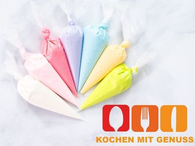 - Mit Lebensmittelfarbe kann die Spritzglasur die gewünschte Farbe erhalten.